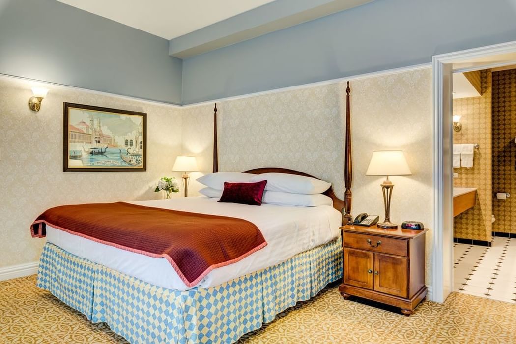 Non-smoking deluxe room with one king bed, dining room and kitchen with microwave / refrigerator. Also equipped with premium cable television, wireless internet, coffee maker, hairdryer, alarm clock, iron and ironing board.